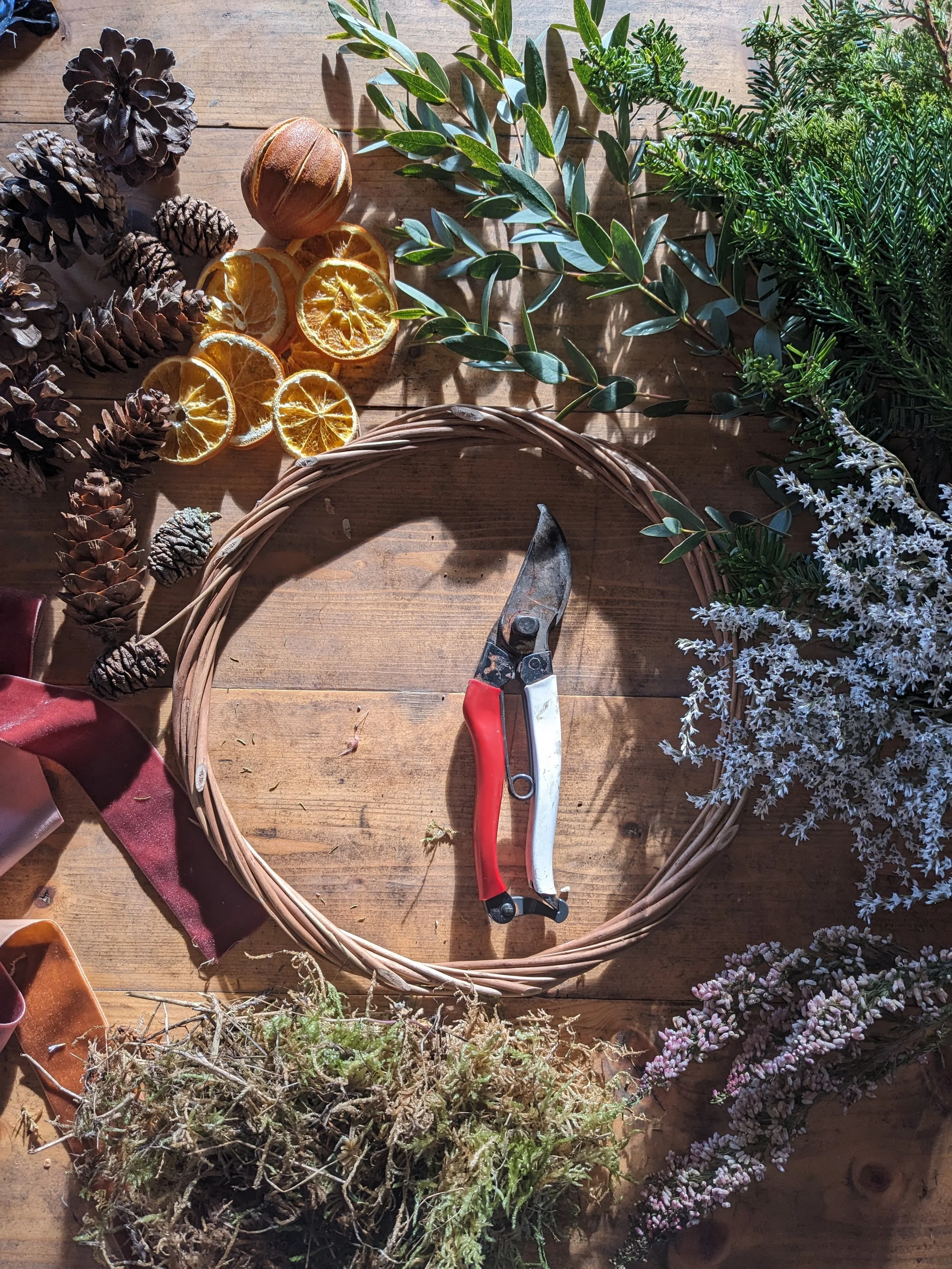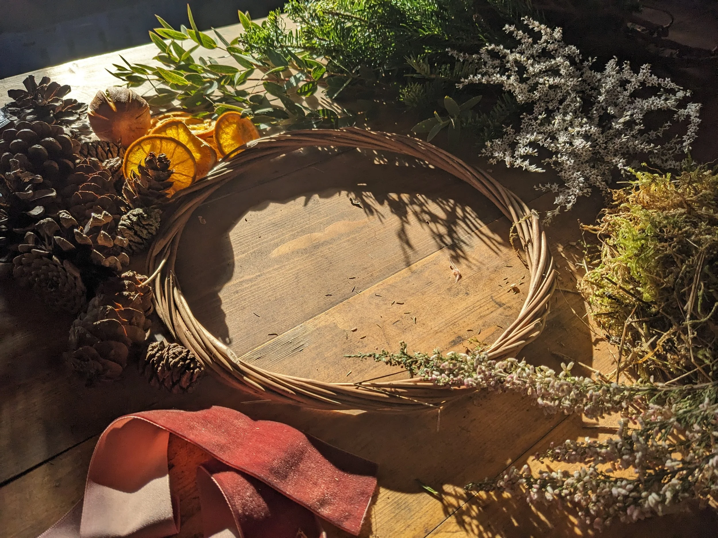 Traditional, beautiful and creative; come and make a wreath with us in the beautiful barn at Three Hares Farm.